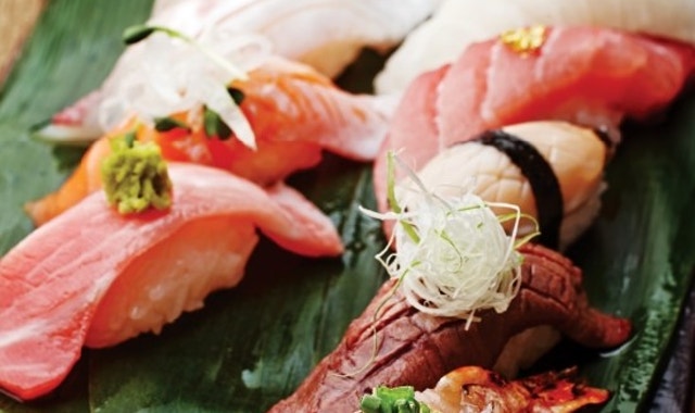 갈릭연어 활어초밥(ガーリックサーモン 活魚寿司)