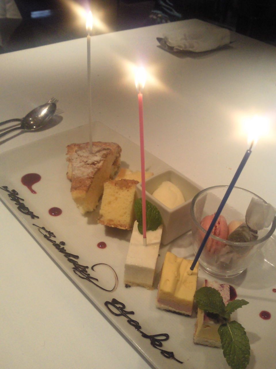 またひとつ歳をとりました~ 実は今日はワタクシのバースデーでした ゆっくりしよーって思っていたけれど、 急きょ昨日に連絡が入って、朝から打ち合わせ でもまぁ、色々聞きたかったことも聞けて満足 そしてランチは、ダンナサマがプチサプライズで予約してくれてて 久々に昼間っからワイン飲んでしまった デザートまでてんこ盛りいただいて幸せでした~ 誕生日くらいは、いい思いしないとねぇ パパありがとう 明日からまた気分新たに頑張りまっす