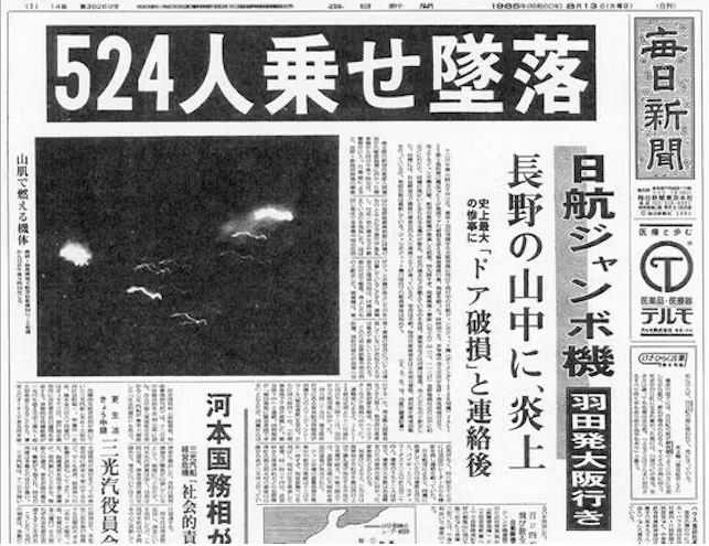 1985年8月に起きた日航機墜落じkぽ事故。捜査現場に12台の