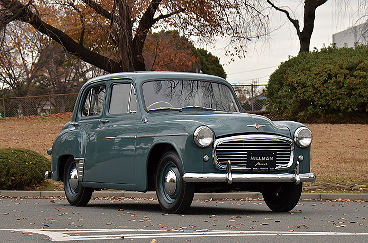 初代ヒルマンミンクスの中でも最初期型に当たる個体。いすゞの乗用車生産の始まりを告げる、記念碑的なモデルである。