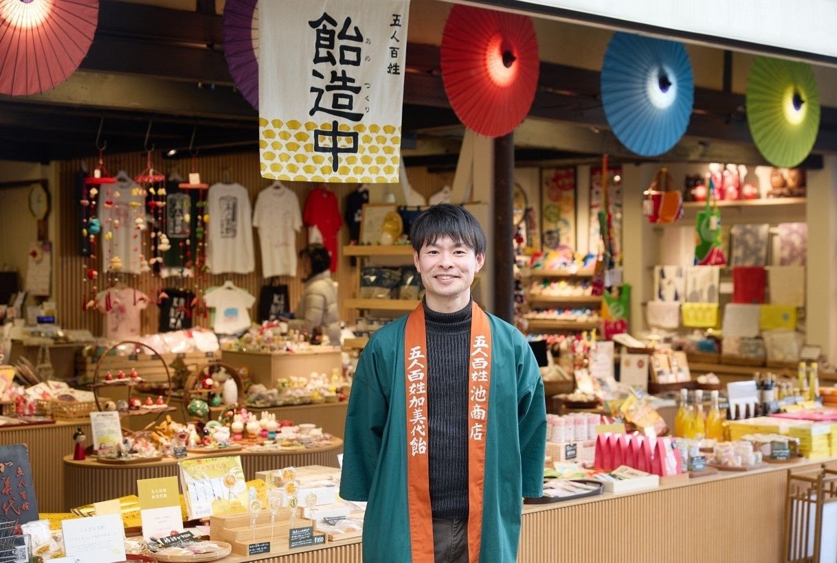 支援対象となる五人百姓池商店は、1245年の創業から780年以上にわたり、金刀比羅宮(こんぴらさん)の参道で伝統菓子「加美代飴」の製造・販売を続けている。