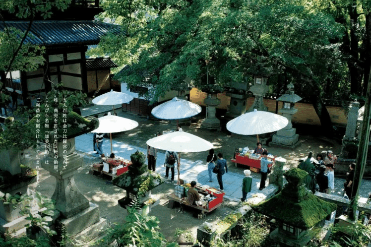 なお、同社が名を冠する「五人百姓」とは、金刀比羅宮の境内で唯一商売を許された5軒の飴屋を指す。その起源は1000年以上前、神のお供としてこの地に来た5つの家系にまで遡り、代々神事の手伝いをしながら参拝者向けに飴を作り続けてきた歴史がある。