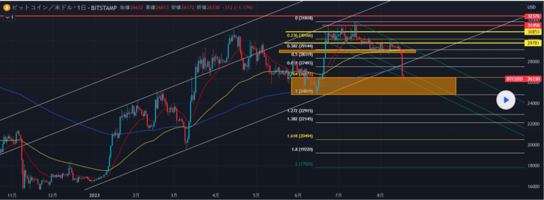 チャネルラインを既に下抜けているので、しばらくシンドイ展開が続く可能性がありそうです。