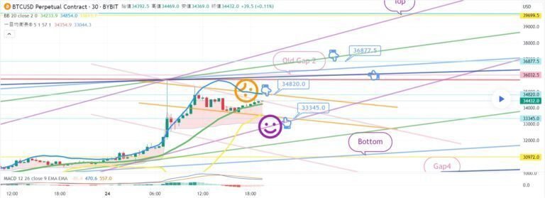 3. 36877.5ブルロングポジション1次ターゲット -> Top区間2次ターゲット