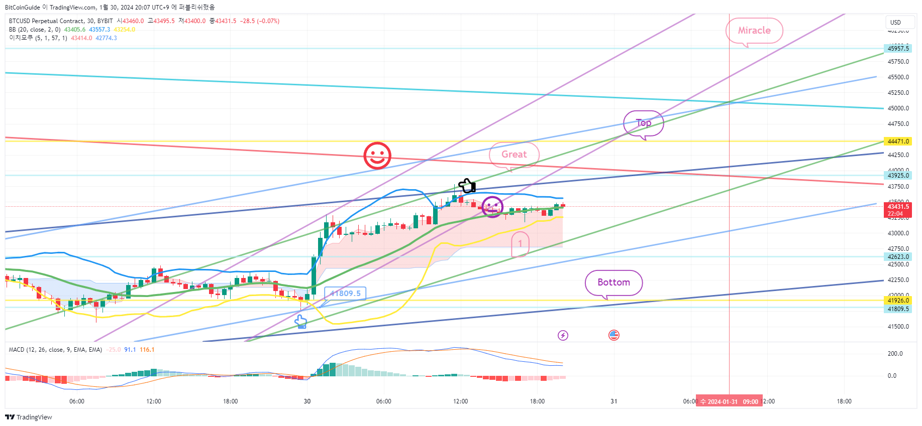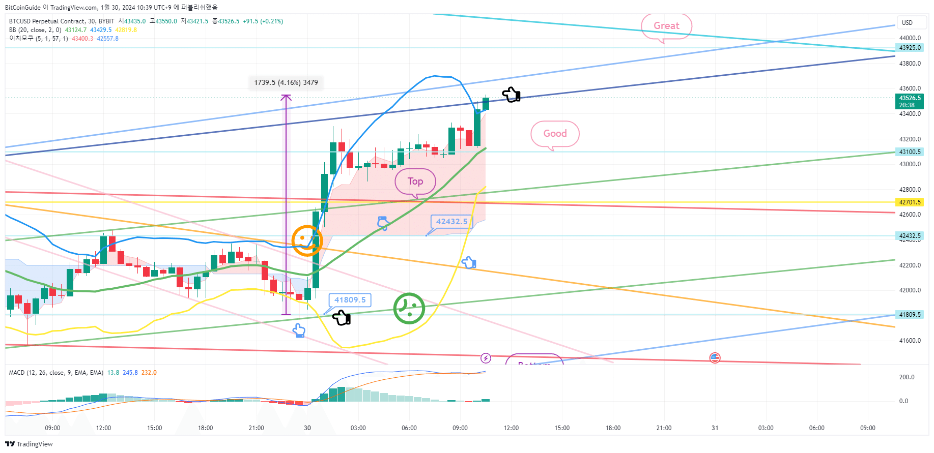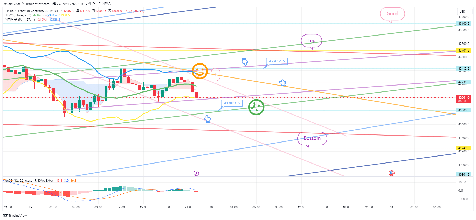 2. 42432.5ブルロングポジション1次ターゲット -> Top区間2次ターゲット