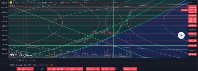 ギャンスクエア&フィボナッチサークルの交点を結ぶとトレンドラインが現れる