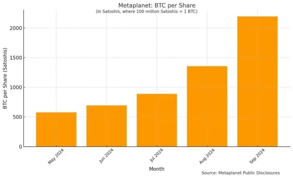 メタプラネットは1株あたりのビットコイン保有量を毎月増やすことに重点的に取り組み、株価が年初から587%増加した。