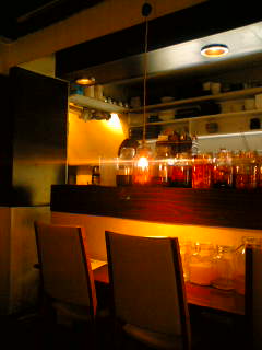 しかし、メニューを見ると、雑穀、無農薬、和三盆などの「和」や「健康」な文字がずらっと並んでいる。ランチメニューも体に良さそうな中身で、思わず食指が動いてしまう。いかんいかん、この後何軒もの店を回らなければいけないのだ!と心を鬼にする。しかし、ここでコーヒーも興ざめかと思い、お勧めメニューの中にあった「十六穀ともち米のお汁粉」をオーダーする。普段、私はお汁粉など食べたいとは思わないのだが、薄暗く落ち着く雰囲気の中、ちょっとまったりしたいなあ、というときには、酒もいいが、甘いものも格別である。私が座った席には天井からランプがすぐ目の前まで降りてきていて、スポットライトのようにテーブルの上を照らしている。
