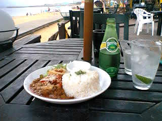 そんな僕の理想にとても近いのが、ここ、福岡は百道浜にあるカフェ、マンマ・ミーアである。ここはボーっと海と空を眺めるのに適しているだけでなく、料理もうまい。(写真は特製タコライス)ここからはすぐに浜に出て、海に飛び込めるのだが、実際に泳がなくても、風は潮の香りを運んでくるし、空は限りなく広いし、かつ、波音は耳にも心にも気持ちよい。初めて訪れた時から虜になり、かなりの確率でここに来ているのであるが、それは泳げないシーズンの方が多いくらいである。今回はここから少し離れた天神から都市高速を突っ走る路線バスに乗り込んでやってきた。始めは天気が怪しく、雷も鳴っていたのだが、徐々に空は明るくなり、晴れ間も、入道雲もきれいに姿を現していた。そして、そんな日差しにちょっと身を預けながら、ゆる~い時間を堪能したのだった。