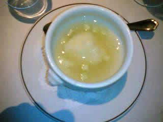 越後屋でしこたまもつ鍋を食したが、博多人はそれでも足りんと二軒目へ。幹事のNくんのご推薦により訪れた穴倉のようなスペイン料理店、Bal Musette。チーズやワインで楽しんだ後はデザートをオーダー。かつての私ならば考えられなかったが、最近の根本は妙に甘党なのである。悩んだ挙句、この「メロンのスープ」をオーダー。これが絶品。もう持って帰りたい、嫁に食べさせたい(←私的に味の最大級の評価)、と即座に思うくらいである。メロンを絞った上にメロンシャーベットが乗っているのであるが、メロンの熟成さや甘み、そのとろけ具合にシャーベットがほろりと口の中で溶け、絶妙のバランスを保つ。これ食いたさに通っても良いと思った・・・。