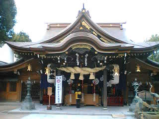 なるほど・・・これはこれは・・・(笑)なんだか、笑える。非常に笑える。思わず朝の8時からいいものを見せてもらった、という感じである。博多の総鎮守と言えば、ここら辺の神社の総元締めである。周りは街中でありながら、古い時代を偲ばせる静かな風情が漂っている。その神社の正門に、このお多福である。高さは5メーターほどもあるでかい顔がでーんとあり、その口をくぐると境内に入る、という仕組みになっている。その口は意外に狭く、気合を入れて背中をかがめないと、思い切り背骨を打ち付ける憎い演出まで施されている。その境内に入っても、おそらく昨日の豆まき(歌舞伎役者がたくさんいらしたようです)の影響か、出店などの建物がまだ残っていて、そのお祭り騒ぎが想像され、さらに進んだところにある本殿(写真右)は、荘厳・・・というよりなんだかハデである。地元大阪で例えるならば、住吉神社を期待していったら、そこは十日戎の翌日の今宮神社だった・・・という感覚であろうか。お多福といい、境内といい、本殿といい、とても博多っ子の気質・心意気をモロに見てしまったようで、ますますここが好きになってしまった。博多祇園山笠の追山はここを基点に出発するようで、まだ見ぬその祭りのハデさも想像に難くない。なお、境内には「懇々と湧き出る名水」という札があり、「1口目に自らの、2口目に家族の、3口目には親類縁者の無病息災を願って飲むとあらたかな霊験が現れる」とのことで、それは素晴らしいとシャクを手に取り、口に運べば、えらく塩っ辛い。思わず、有馬温泉のあの金泉を飲み干した苦い過去を思い出してしまった。やはり、親類縁者まで健康を祈るためには、やはり相当の覚悟がいると悟った。*今回はカフェ巡り(締めて6、7軒、お気に入りを発見できた)に始まり、美味しいものもたくさん頂き、最終日には博多らしい総鎮守様にお参りもでき、非常に充実した旅になりました。ご縁のありました皆様、ありがとうございました。また2ヶ月後に今度はヒーリングワークも開催しに参ります。またお会いできますことを楽しみにしています!・・・はい。もちろん、今回は遊びではなく、趣味でもなく、純粋な仕事、出張としての旅でしたけれど、何か?