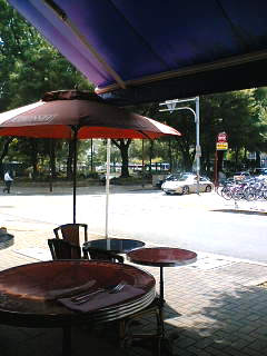 * * *12泊13日という長期出張のため、これは何か目標を作って見ようと思い立ちました。約2週間家族と離れるわけですから、自分にとってもそれなりに意味のある期間にしたいんです。一つは体を休めること、健康に気を使うこと。当たり前のことですけどね。慣れてるとはいえ、ホテル暮らしで食事も外食中心になるわけで、口から入るものには出来るだけ注意したいな・・・と思いました。一つは普段疎かにしがちな自分を見つめること。一人の時間が長いんだから、改めて人生の目標というか、ライフスタイルを見つめなおそうと思ったわけです。ま、「目標を立てることが目標」と言えそうです(^^)カウンセリングやワークショップのお仕事をさせてもらっているお陰で、常に自分自身を見つめてる状態といえばそうなんですけど、将来も見据えた目標を改めて見直すには2週間というのは良い期間です。何度も何度も見つめなおして「おぉー素晴らしい!」と言えるような目標設定をしてみたいと思っています。やはり目標たるものわくわくどきどき、楽しく、喜べる、分かち合えるものでありたいですからねー。それがうまく行けば、ネタになって皆さんにより良い情報を提供できるようになるわけです。これはカウンセリングやワークショップなど心を仕事にしている面白さ、楽しさの一つです!*そういうわけで、早速午前中は伏見の方のタイガーカフェに出かけてきました。名古屋では老舗のカフェで、いかにもエスプレッソが似合いそうな風貌をしてます。栄の方と違ってパークビューなロケーションにあり、また違った雰囲気が楽しめます。当然のように公園の見えるオープン席を確保。