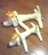 この店は狭いけれど、原美術館でも見た、展示されてた作品のグッズが売ってるんです。「おぉ、この皿でチーズケーキを食ったぞ」という紺泉氏の作品もありました。で、食指がもっとも動いて、これは是非、娘へのプレゼントにしようと思ったのが、こちらの奈良美智氏・パップキングのぬいぐるみ。購入後にお店の方から「これはこのお店でしか扱ってないんですよ。ネットショップでは買えないんですよ」と教えてもらい、特別意識も急上昇(^^)実際、家に持って帰ると、うちの奥さんも娘も非常に喜び、早速その晩から一緒に寝てます。柔らかくて、かわいくて、2匹揃ってとてもいい感じで・・・。素敵な戦利品となりました。