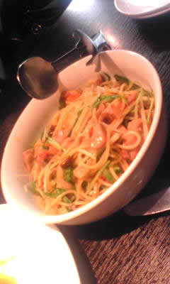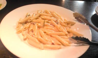 さて、フレンチなんで見知らぬメニューが並びますが、この店はサラダがうまいんです。まずは、ホタテのマリネ。グレープフルーツの酸味がアクセントになって、がっついてしまいます。続いて、ワカサギとズッキーニのサラダ。これも非常に美味。(写真はなし)これにスペインはカヴァのスパークリングワインを合わせます。やはりフレッシュなサラダ、マリネに辛口のスパークリングワインはよく合います。素敵です。どこまでも付いていきます。はい。さて、メインの魚・肉は飛ばして、パスタへ。アーリオオーリオに、ペンネ・ゴルゴンゾーラ。これもまた素晴らしい味なんです。ペンネはいつも娘用にオーダーするんですけど、ついつい親が食べ過ぎてしまうんですよね。それくらいお気に入りです。アーリオオーリオも大好きなパスタの一つで、この日は「若鶏ときのこ、ミズナ」でした。ちょっと和風な味付けも面白かったですね。て、最後になったのが、サルシッシャとトリップ、白インゲンのカスレ。イタリアのソーセージと白インゲン、ホルモンを煮込んでグラタン風に焼き上げた逸品です。聞いたことがない単語が並ぶとパニックになりますね。でもでも、フルボディの赤がほしいです・・・というくらいに濃厚で、エキサイティングなうまさでした。週末にこんな美味しいものを食べられる幸せをかみ締めつつ、でも、私は次の日はふつうに仕事なのでした~(^^)