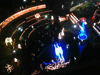そのイルミネーションの近景です。下に下りてくるとこんな景色です。とても美しく、感動的です。雨というのにたくさんの人たちが見入っていました。実は12月の始めの来福時にも一度訪れているのですが、ラーメン欲が勝っていたせいか、じっくり堪能するには至らなかったのです・・・(笑)