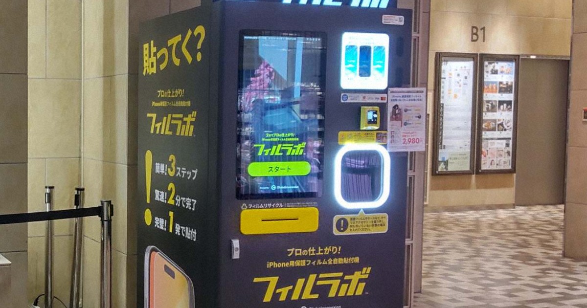 iPhoneのフィルムを全自動で貼ってくれる機械で、