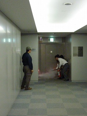 火災想定場所が当公社フロアであったため、消化器訓練やら通報やらで