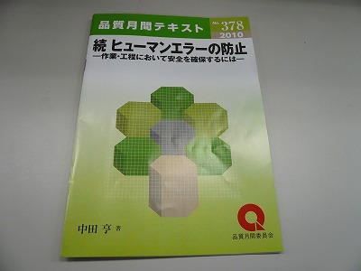 その中の1冊「続 ヒューマンエラーの防止」(中田 亨著 品質月間委員会発行 525円)を紹介します。