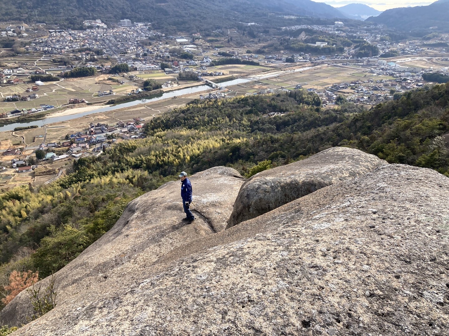 今日は一日休息日と思っていましたが、小田山ルート開拓チームのTリーダーとMさんが黒瀬側からのルートで岩山(城山)に行くと言うので同行してきました(^○^)東広島呉道の岩山トンネル北側から登るルートですが、元々道があった様で、古いテープが確認できます。小田山新ルート開拓チームのTリーダーが再整備しているルートで、上りは岩山トンネル北側口の西側から登り、下山は同トンネル東側に降りてきました。登りと下りは違う尾根を通るルートで歩いてきました!そして、新規開拓とまではいかないかも知れませんが、岩山山頂の先の展望岩のすぐ下に(火の用心の岩に降りる途中)今まで人が行っていなかった岩場を見つけ、行けるようにルートにピンクリボンを付けました!そして帰り道、黒瀬側への尾根の途中から東側(国道375号線側)の巨大な岩場に繋がる道を見つけて再整備(古いテープが有りましたが全くの藪漕ぎ状態)今日は剪定バサミとノコギリしかなかったので満足な下刈りは出来ていませんが、ある程度歩けるようにしてピンクリボンを付けて来ました。一見の価値はある岩場です♪興味のある方はYAMAPの写真と軌跡を参考にして是非行ってみて下さい(^^)