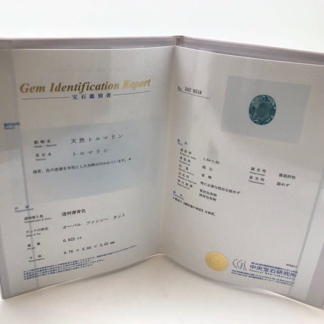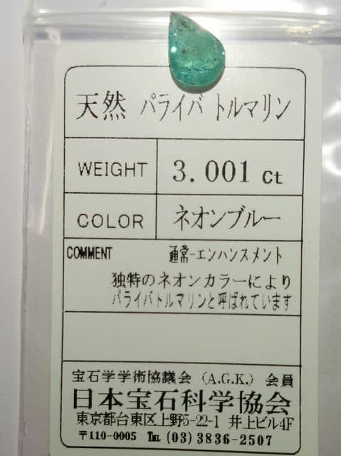 中央宝研発行の鑑別書・パライバ成分分析書付も入手。