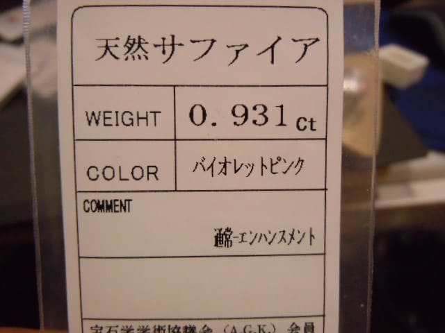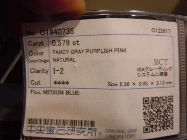 この画像は先日紹介したピンクダイヤモンドが納品されてきた画像です。(中央宝研ソーレポ付)