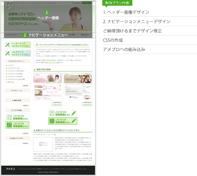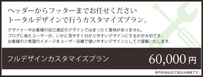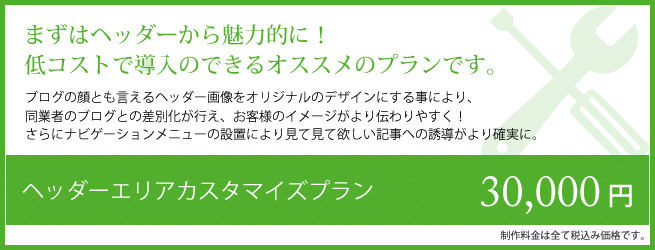 ヘッダーエリアカスタマイズプランとオプションの組み合わせや、必要な部分のみをお選び頂きお申し込みください。