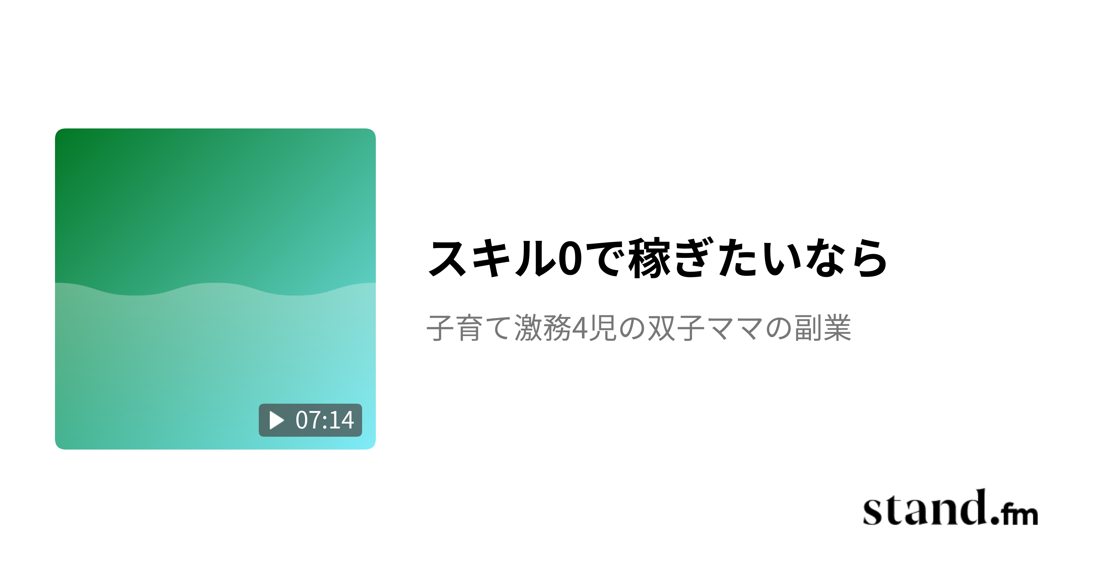 スキル0で稼ぎたいなら - 子育て激務4児の双子ママの副業 | stand.fmお家で稼げないのは やり方を知らないだけ スキル0実績0副業初心者ママの簡単副業 https://brmk.io/T1oM ココナラチャット相談サポートしてまーす♪ https://coconala.com/services/2685115 #副業#子育てママ#お小遣い稼ぎ#節約#在宅ワーク#stand.fm