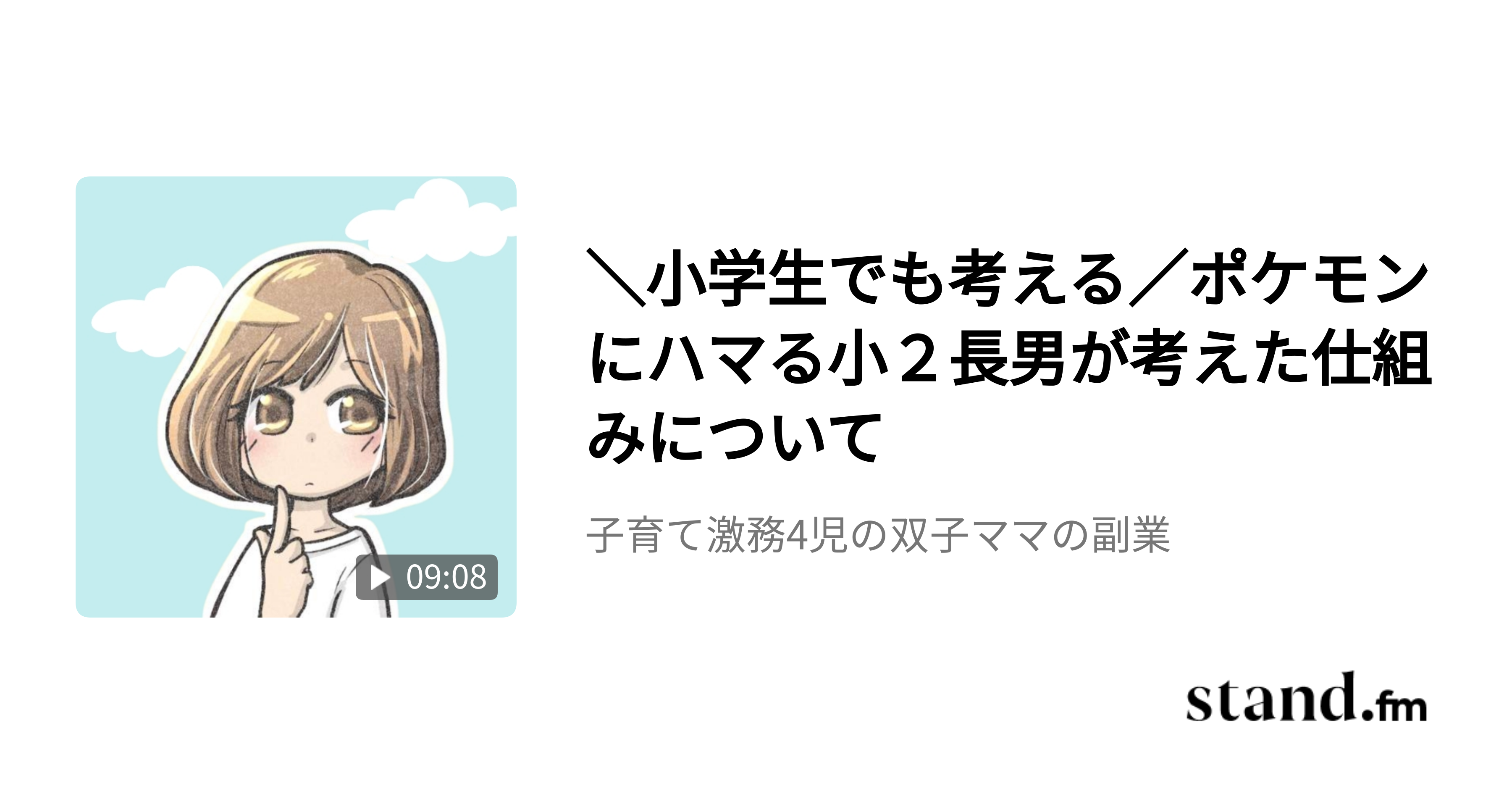 \小学生でも考える/ポケモンにハマる小2長男が考えた仕組みについて - 子育て激務4児の双子ママの副業 | stand.fm\スタエフ/副業初心者が0から10万円稼ぐまでのロードマップ https://stand.fm/episodes/63869d9b7ec342a3a9902fd8 \NOTE版/副業ママ初心者が10万円収益ロードマップ https://note.com/cutetwin_second/n/nfc1e3cf44de0 …stand.fm