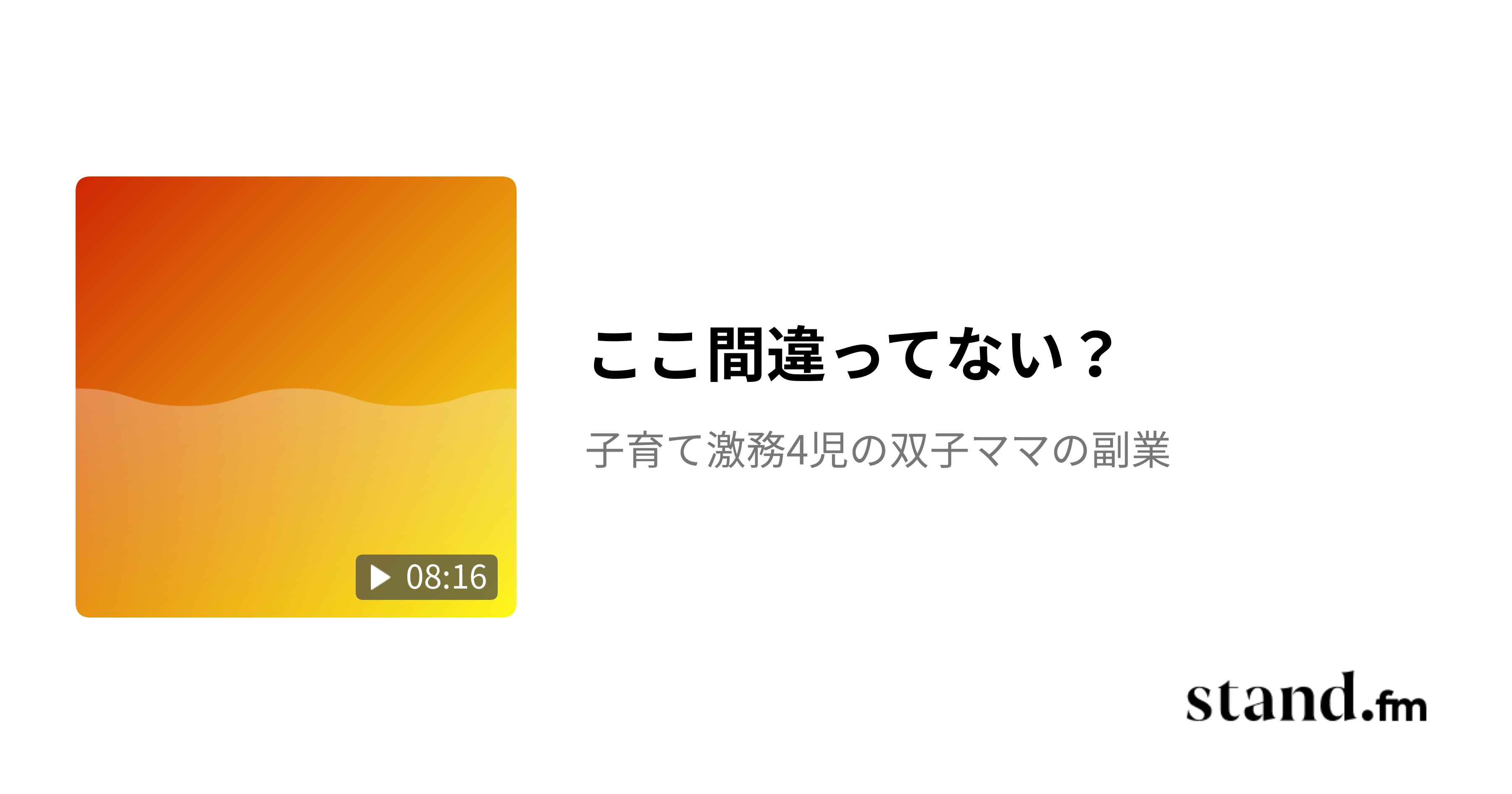 ここ間違ってない? - 子育て激務4児の双子ママの副業 | stand.fm副業初心者ママの相談室 ↓ https://coconala.com/services/2680124 #ココナラ出品 #売れない #初心者 #副業さがしてます #在宅ワーク #お小遣い #節約 #副業 #スマホ副業 stand.fm