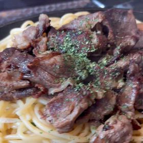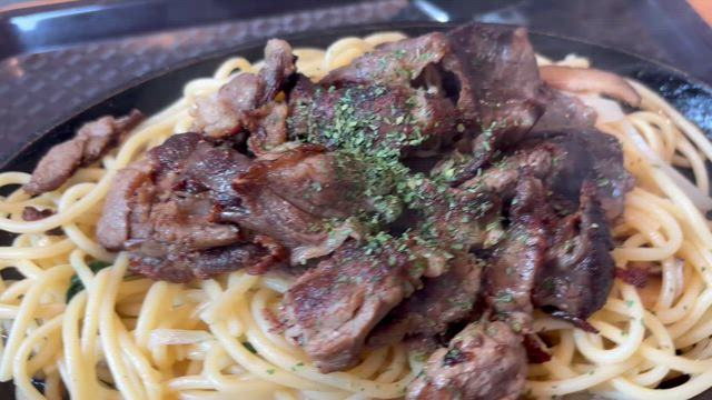 鉄板バタービーフパスタ 980円 +129円 Lサイズ チュルリラ 福岡県福福岡市博多区博多駅前