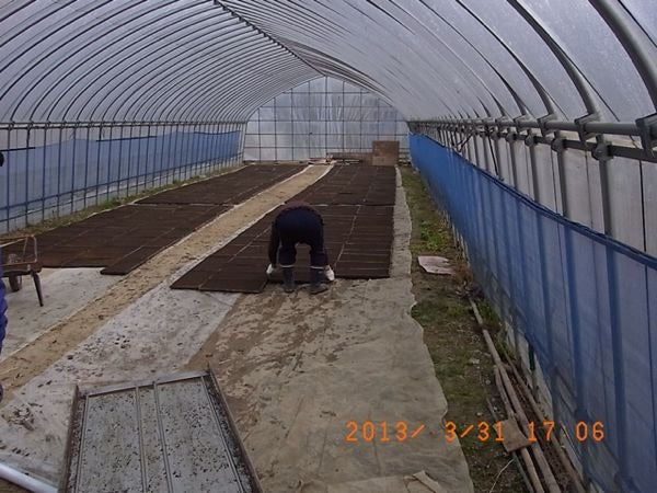 本日はイネの種まき作業の予定でしたが、種もみが濡れていて機械に入らず困っていました。ドライヤー、石油ファンヒーターで温風を当ててかき混ぜているうちに、種もみの芽が取れてもげてしまいました。私はある程度作業が進むとあきらめる決心ができにくくなることを知ってましたので、その場から立ち去ってしまいました。