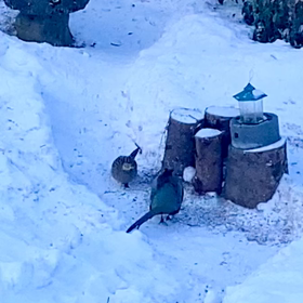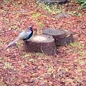 雉の母鳥が子供達を引き連れて庭にやってきた