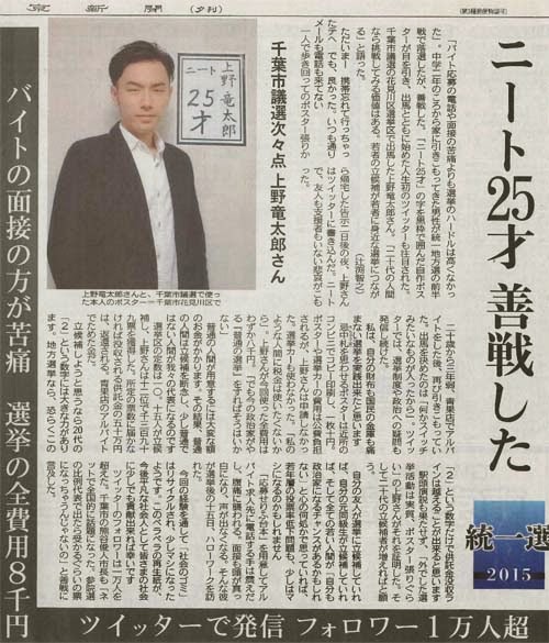 お金がかからない政治東京新聞私は、彼を心から尊敬します。まさに、「はじめの一歩」を示したんです。日本の閉鎖社会のパンドラの箱を開けた、第一人者だと思います。まるでエベレストに初登頂したエドモンド・ヒラリーのように・・・「お金が掛からない政治。」「お金が掛からない選挙。」これこそが、日本を根本から変える改革です。