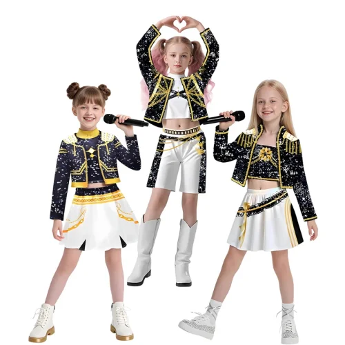 今年のハロウィンは、子供が好きなK-POPアイドルになりきって楽しみたい!というリクエストに応えるべく、韓国のアイドル風の「ガールズ K-POP ルミ コスチューム アイドル ミラ コスプレ 衣装」を探していました。中でも、この「デモンハンター ルミ コスチューム」は、デザインがとっても可愛くて、まさに子供が求めていたイメージにぴったり!届いた瞬間から、子供は大喜びで、すぐにでも着てみたいと目を輝かせていました。