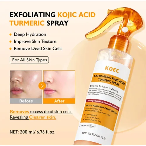 Let's talk about my latest skincare discovery: the Body Face Peeling Shot Spray, Exfoliating Kojic Acid Turmeric Keratin Spray. As someone always on the lookout for Korean skincare that delivers, I decided to give this a whirl. When I started using this Body Face Peeling Shot Spray, I was genuinely curious to see if it lived up to its promise of deep hydration and removing dead skin cells.