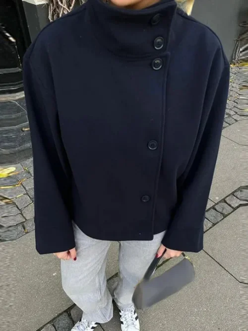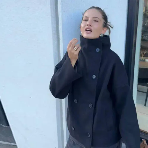 今年の秋冬は、どんなコートを選ぼうかと悩んでいたところ、偶然見つけたのが「ブラックウールブレンドスタンドカラーシングルブレスト長袖厚手暖かジャケット2025年秋冬レディースアウター」です。デザインに一目惚れして、思い切って購入してみました。届いた実物は、写真で見た以上に上品で、まさに求めていたイメージそのものでした。