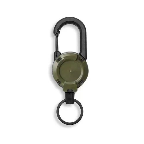 実際に手に取ってみると、そのずっしりとした重厚感にまず驚きました。カラビナ部分もしっかりとした作りで、アウトドア用のバックパックやベルトに簡単に取り付けられます。スチールワイヤーは思った以上にスムーズに伸縮し、鍵や小型ライトなどをぶら下げていても、不意に落ちてしまう心配はなさそうです。ワイヤーの長さも十分にあるので、ちょっとした作業で鍵を使いたい時にも、本体から大きく離すことができて便利でした。本体の耐久性も高そうで、多少手荒に扱っても大丈夫そうな安心感があります。