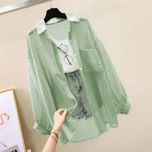 今年の夏は、日差しが強くなる前に何か良いUV対策になるトップスがないかなと探していました。そんな時、偶然見つけたのがこの「エレガント透け感薄手シフォンブラウス 韓国原宿風透け感ゆったりトップス カジュアルレディースカーディガン」です。見た目のデザインがとても素敵で、UVカット機能もあるという謳い文句に惹かれて、思わず購入ボタンを押してしまいました。