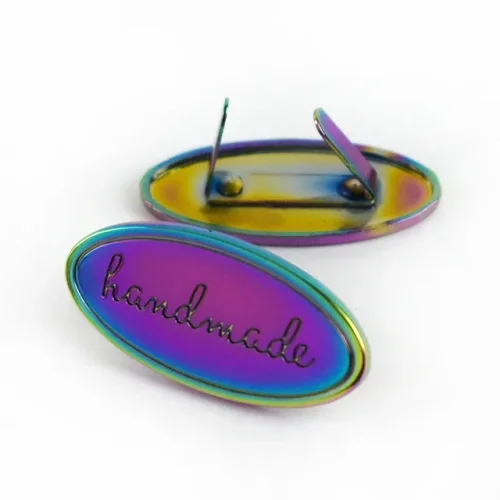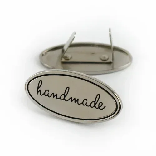 実際に届いたタグは、想像していたよりもずっとしっかりとした作りで、高級感がありました。35mmと40mmのサイズがセットになっているのも嬉しいポイントですね。バッグのフラップ部分や、サイドにアクセントとして付けてみたのですが、これが驚くほど見栄えが変わります!シンプルなデザインのバッグが、このタグ一つでぐっと洗練された印象になり、まるで既製品のような仕上がりに。金属の質感と、手作りの温かみが絶妙にマッチして、とにかくおしゃれです。