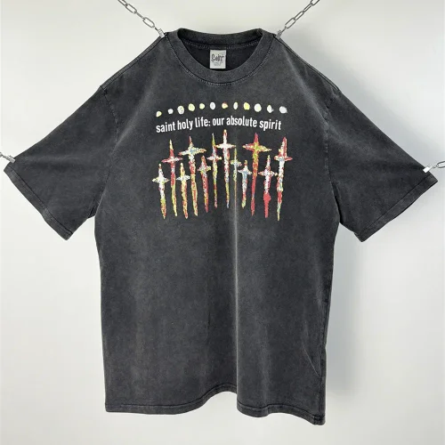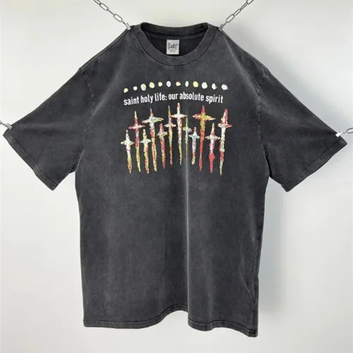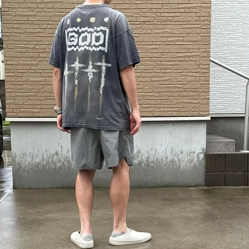 実際に手に取ってみて、まず生地の質感がとても良いことに驚きました。コットン100%というだけあって、肌触りが柔らかく、着心地が抜群です。オーバーサイズのシルエットも、まさに求めていたリラックス感があります。洗濯を繰り返しても型崩れしにくいしっかりとした作りで、長く愛用できそうだと感じました。フロントの「聖ミカエル」のデザインも、ヴィンテージ感があって派手すぎず、さりげないおしゃれさを演出してくれます。