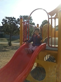 滑り台わたしは滑り台が大好き!今日はぽかぽか暖かいからダダが近くの霞ヶ丘公園に連れて来てくれたの。 えっ、もう行くって? あ~ぁ、しょうたを幼稚園にお迎えに行く時間だって。 もっと遊びたいのに(´¬`) Hannah