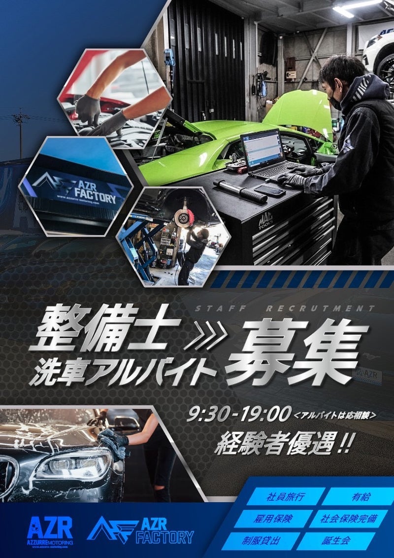 アズールモータリングでは整備士&洗車アルバイトを募集しています!!