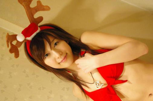 と言うか赤いビキニにトナカイカチューシャ(*^-^*)