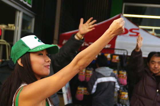 島田和菜、古澤恵のドラスタギャルコンビは寒い中この衣装でメチャクチャ頑張ってました