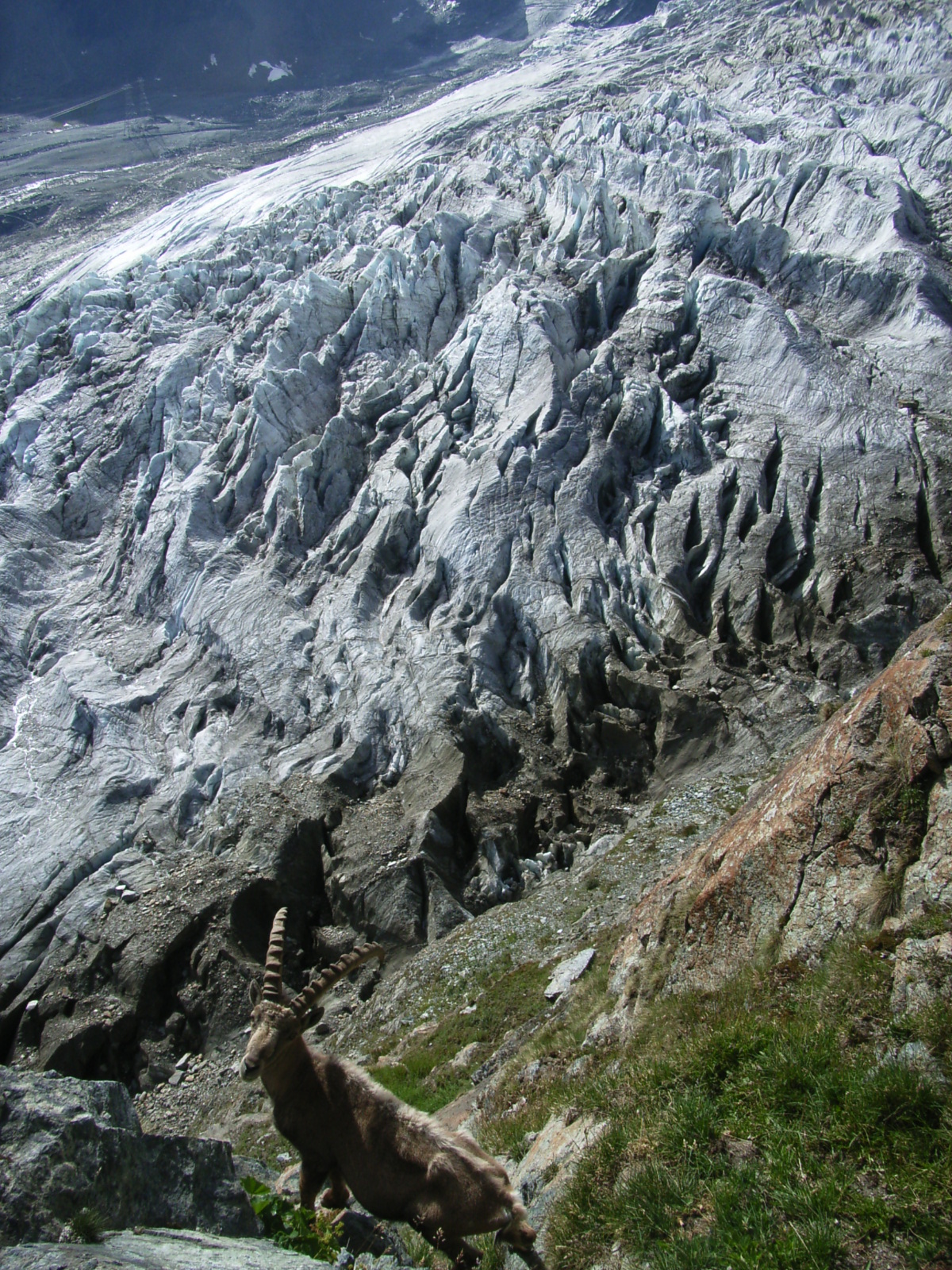 角があるのは「シュタインボック」、鹿ですね。角の筋で年齢がわかるそうで、この鹿は9歳でした。私たちが氷河に感動していたときに、突然、目の前に現れて、氷河と緑とシュタインボックという「おいしい」写真を撮影させてくれました。