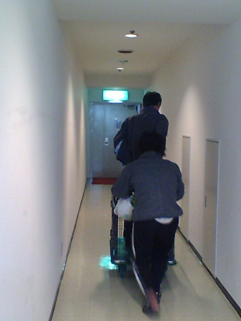 写真は、元旦からマンションの台車に乗って遊ぶ、アホな二人。