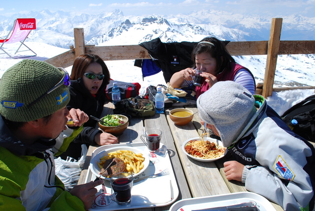 距離的には、2300mベースからイッキにゴンドラで2900m以上の地点まであがり、降りてきましたが、1本5km以上。今日の滑走距離はMさんは13kmくらいでしたね。