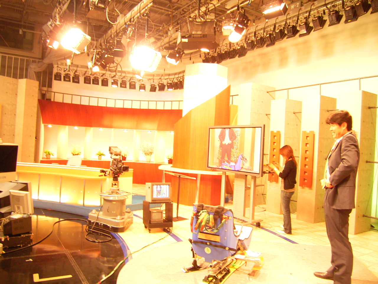 放送は夕方6時すぎからだったのですが、打ち合わせやリハーサルなどを2時間前くらいからやって、本番という感じでした。(写真はカメラ位置などを決めているところです)