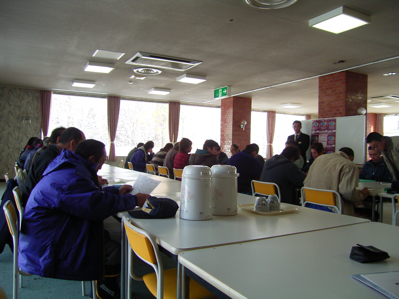 こういうオリエンテーションは、どのスキー場でも実施されていると思います。内容は主に営業時間やシフトなどだと思います。