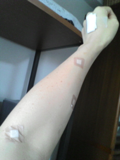 点滴 なぜか年に一度は必ず点滴のお世話になります。 点滴って速効性があるから好き(笑) ビバ点滴ヽ(≧▽≦)/ しかし、いくら血管に刺さらないからって 刺しすぎじゃない? コレ(笑) ※お陰様で今は元気です。ご心配なく(。・_・。)ノ